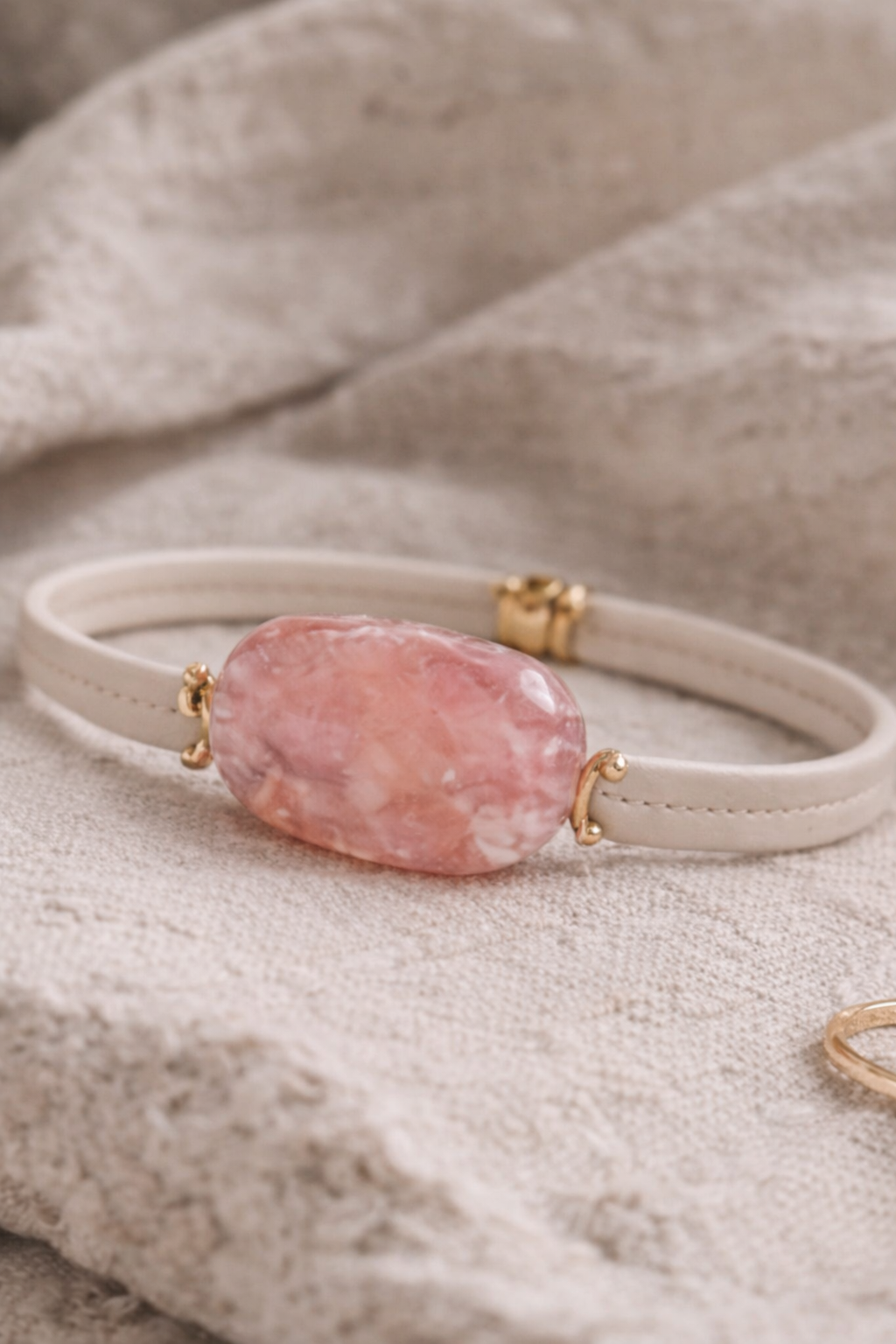 Roosakas poolvääriskivi lisab naiselikku pehmust, samal ajal säilitades Cloud Dancer kollektsiooni tasakaaluka ja rahuliku joone.